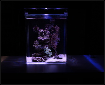 Nano akvárium Dennerle Nanomarinus 30 litrů obývané Lybia tesselata,Gobiodon okinawae,Pseudochromis fridmanni,Paguristes cadennati