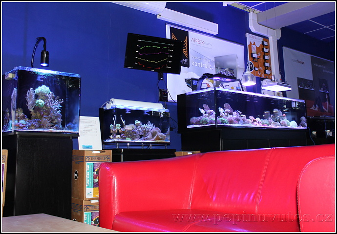 Co u nás můžete vidět? Spoustu zařízených mořských akvárií pro inspiraci.